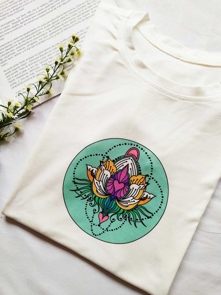 Camiseta flor loto S-Blanco