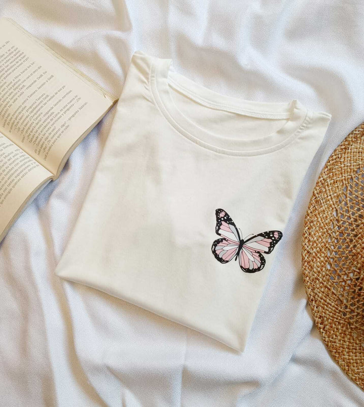 Camiseta Mariposa II-Blanco Hueso